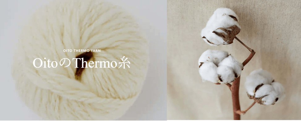 太陽光や蛍光灯の明かりを熱に変換する「Thermo糸/サーモ糸」を使用。