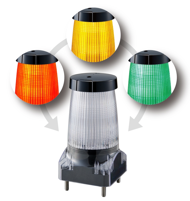 赤黄緑の3色発光で、クレーン作業の負荷状態の表示や、建設機械への接近警告の表示(近接センサ等との連携)などが可能