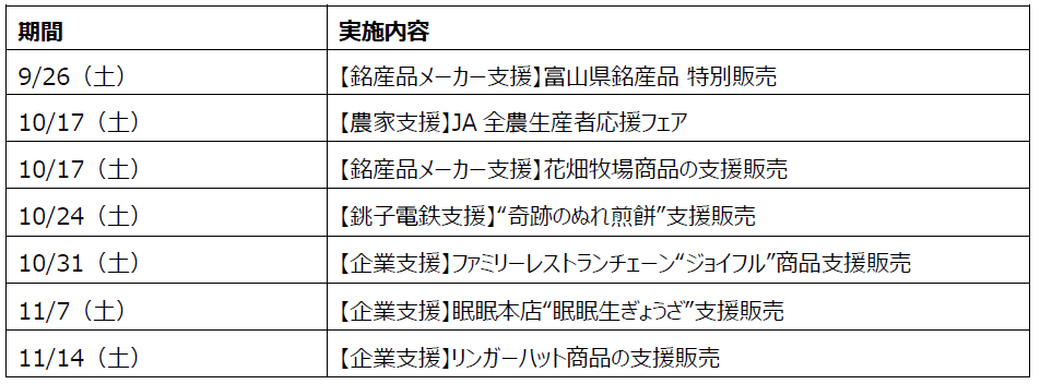 【当社で9月以降に取り組んだ応援・支援企画の一部内容】