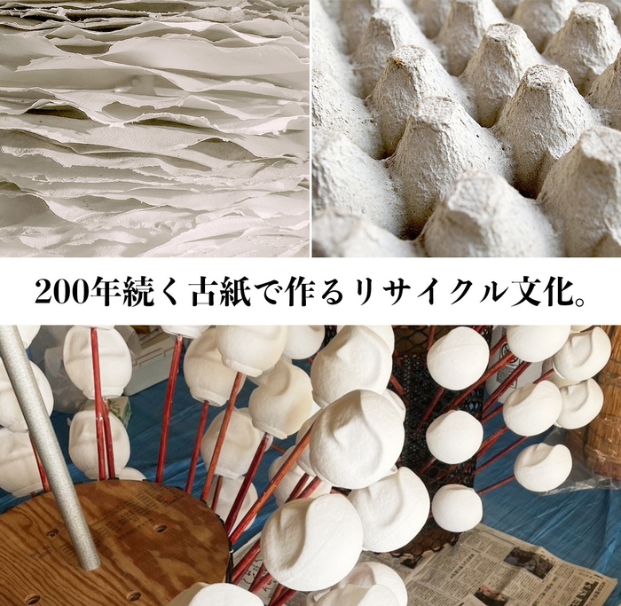 古新聞紙やたまごの紙トレーを再利用して作られるダルマは、