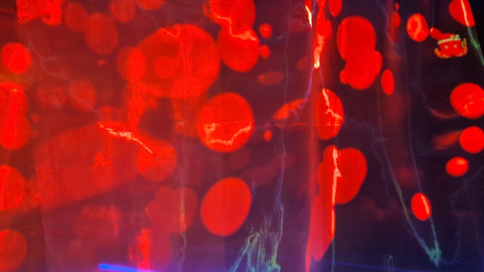 「海」か「宇宙」か?「マクロ」か「ミクロ」か?様々な色彩の光の波に満たされた不思議な空間