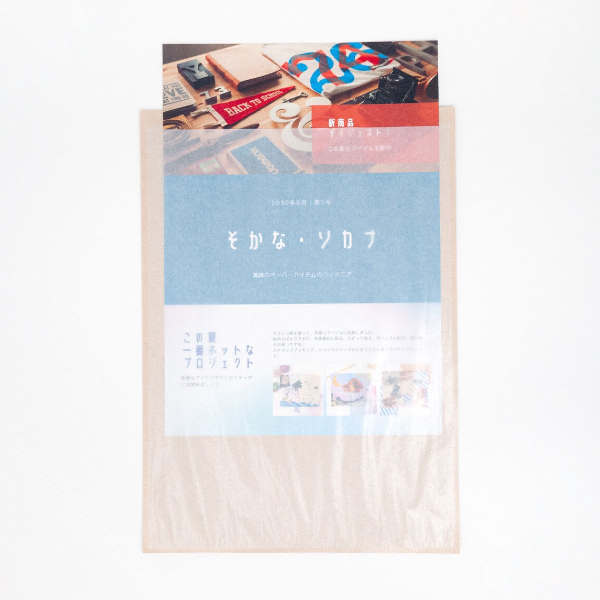 グラシン紙とクラフト紙または上質紙を貼り合わせて作成した軽量のクリアファイル。