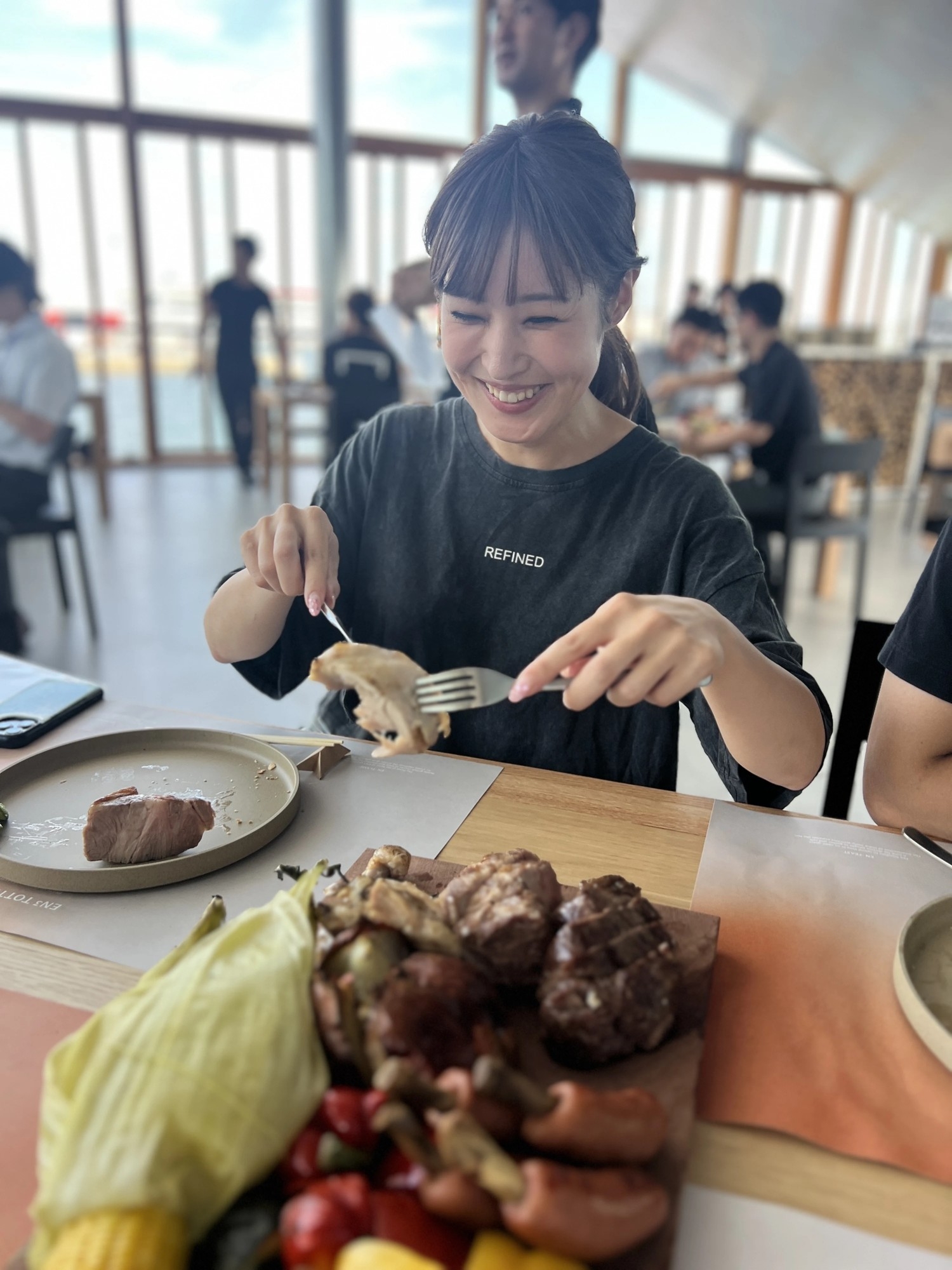 オープン初日となった本日、2階BBQレストランではご予約のお客様が次々と訪れ、開放感ある店内で食事を楽しまれました。