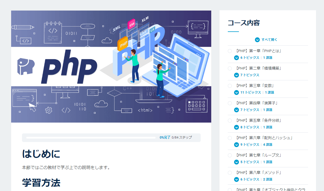 今回公開されたphp講座では、例題を解いて動きを知る「体験重視」で学べるため、プログラミング初心者の方にも理解しやすい内容となっております。