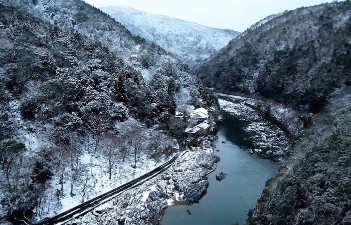 星のや京都のダイニングでは、2020年12月1日~2021年1月31日の期間、「冬の暖を味わい、春の芽吹きを待つ」をテーマにした会席料理を提供します。一面が雪に閉ざされしんとした冬の嵐山に滞在するからこそ、冬ならではのあたたかさを五感で味わい、雪が降りしきる一面の銀世界や迎春の寿ぎ、そして春の芽吹きの情景を楽しむことができる料理です。