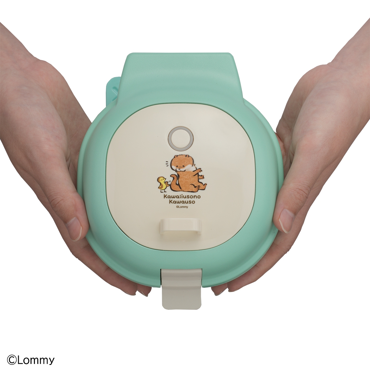 パンケーキメーカー本体にはカワウソとカモちゃんが描かれております。また、焼き上がりは両面で表情の異なるカワウソの焼き目が現れ2倍楽しめます。