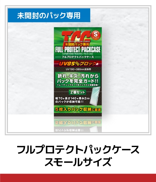 フルプロテクトパックケースは、未開封パックを収納可能です。5枚入りパックの厚みに対応したスモールサイズと15枚入りパックの厚みに対応したラージサイズの2サイズ展開です。