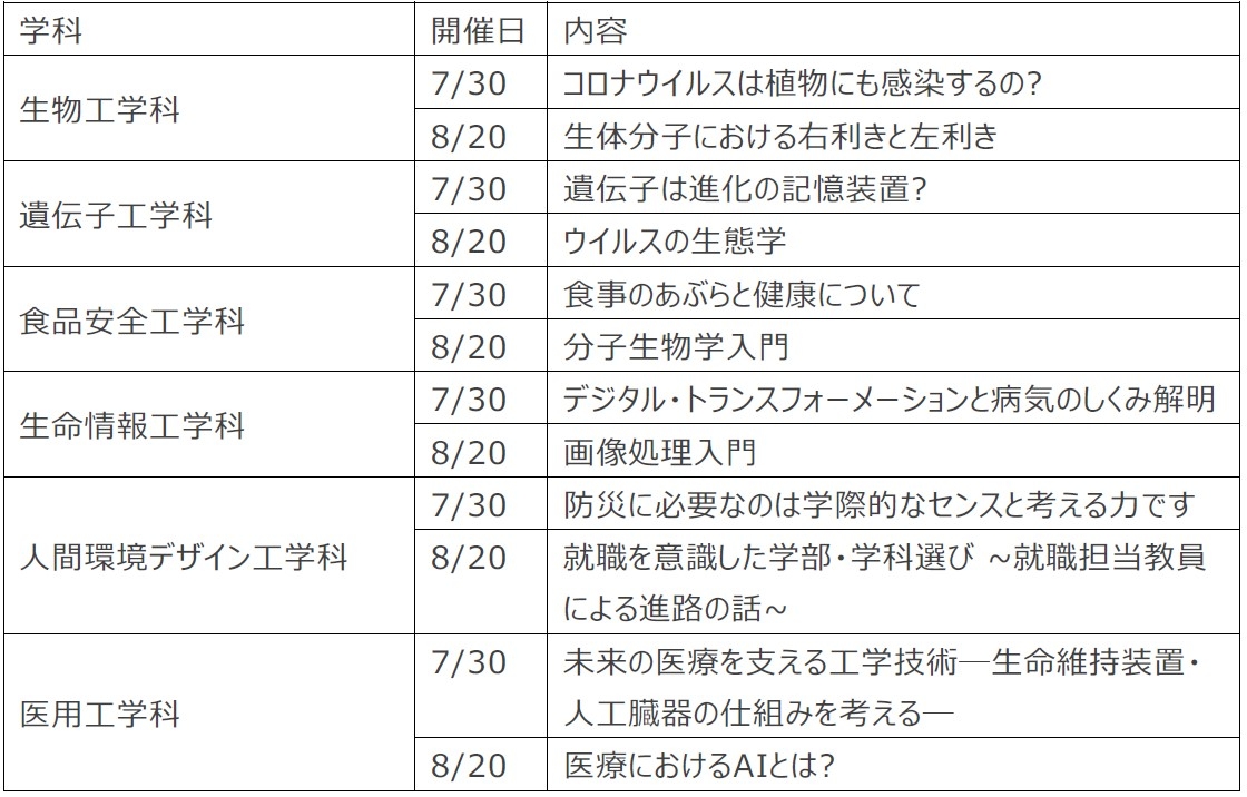 ・模擬講義(両日、学科ごとに開始時間が異なります)
