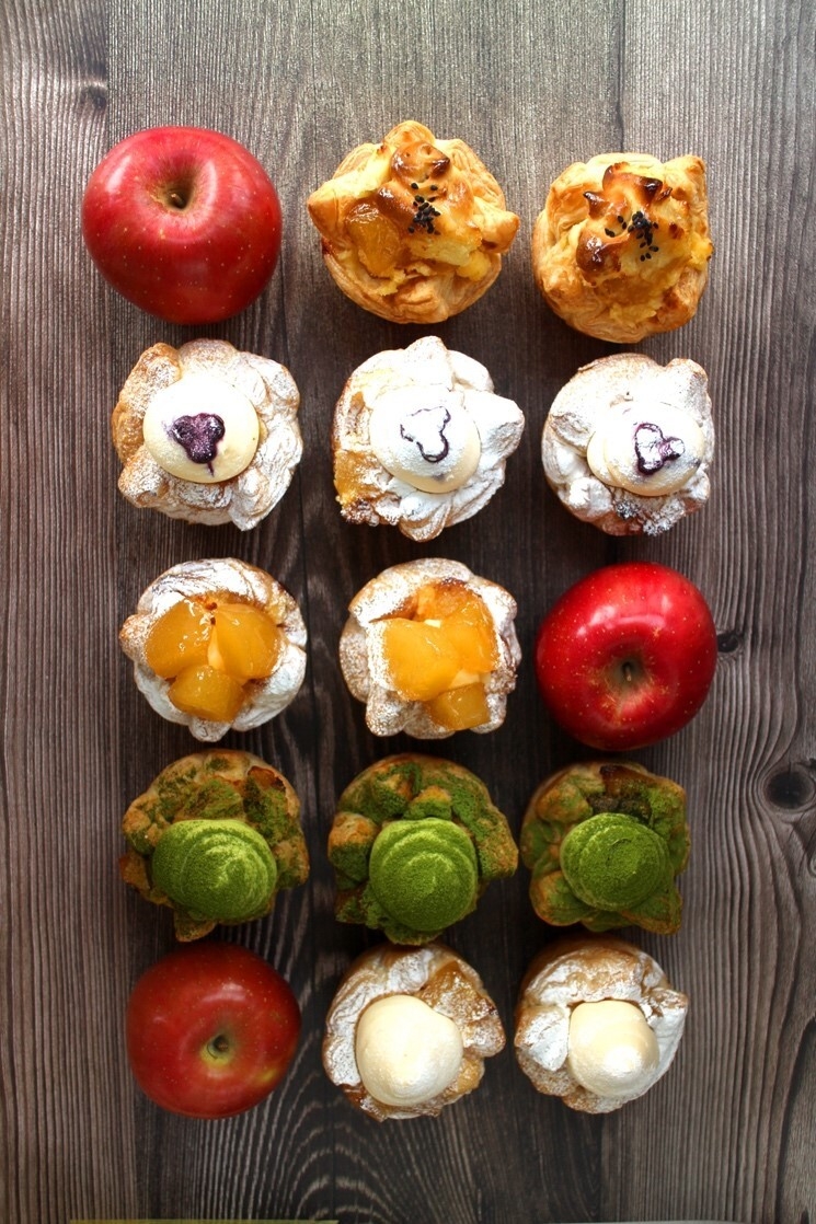 味のバリエーションは計5種類。りんごとシナモンを使った定番の味に加え、カスタード、抹茶、マスカルポーネ、スイートポテトをラインナップしました。