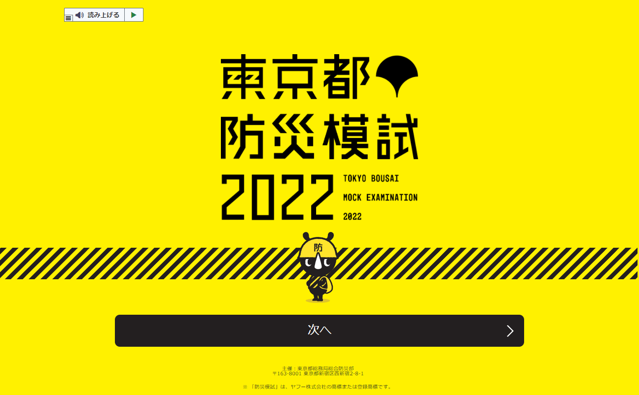 『東京都防災模試』のホームページを開きスタートしてください。