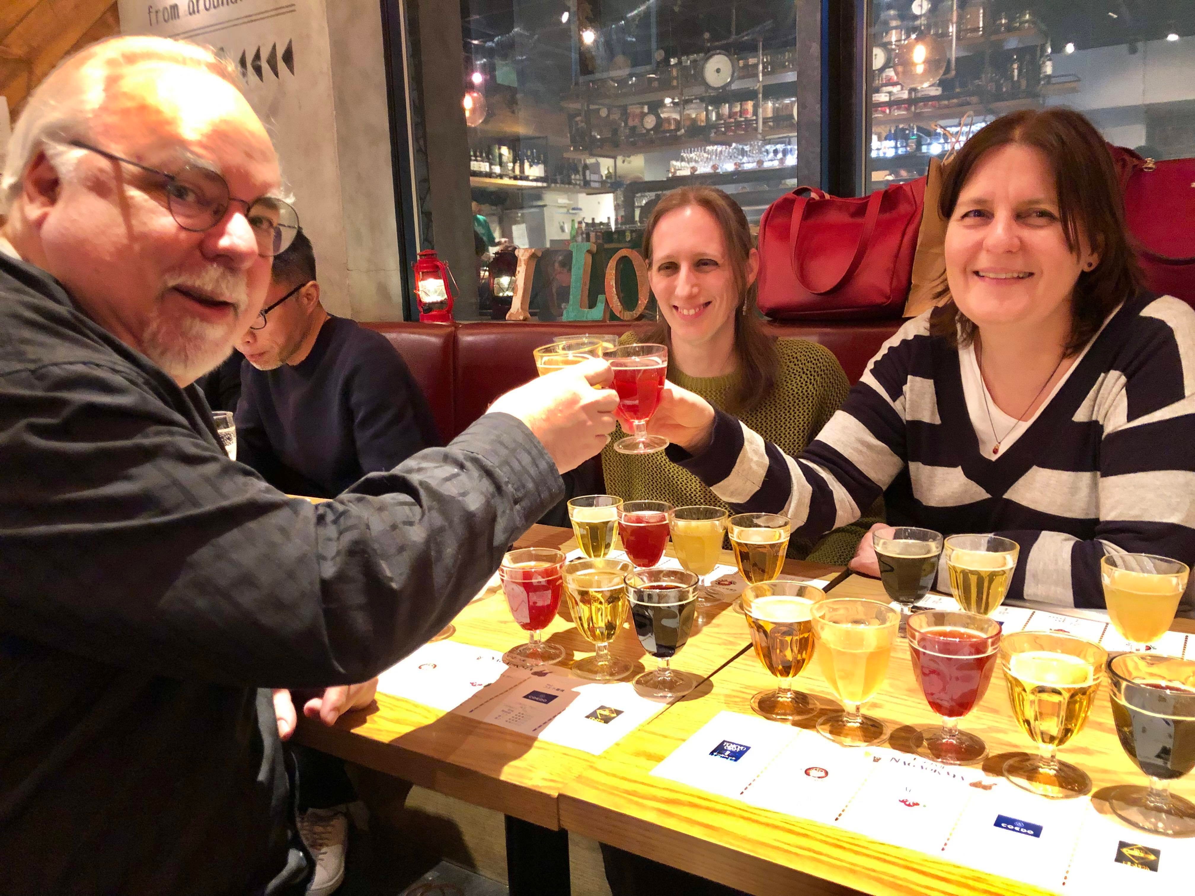 ▲「ビアバルNAGAOKAYA」では国内外のクラフトビール5種飲み比べが外国人客にも人気