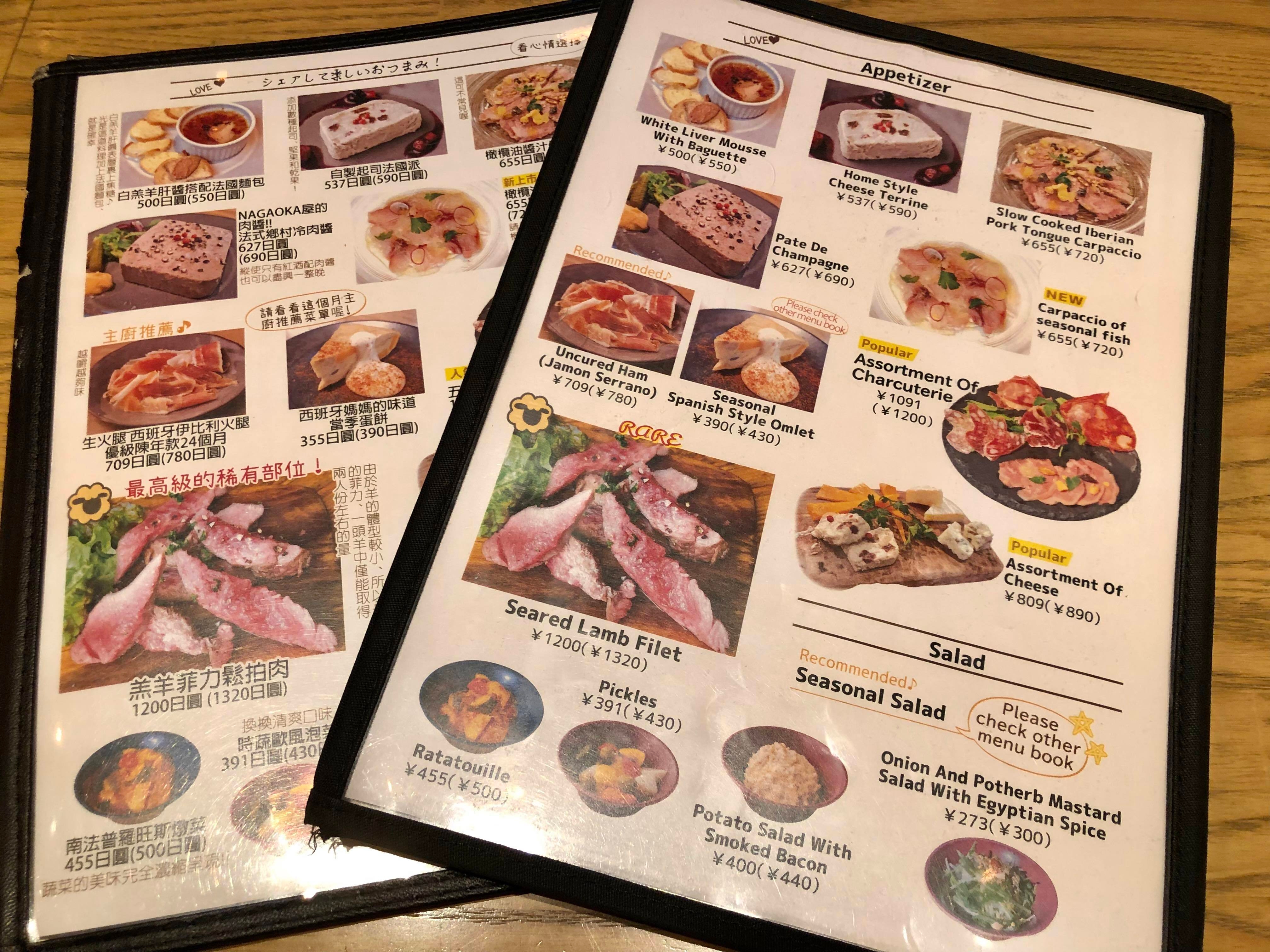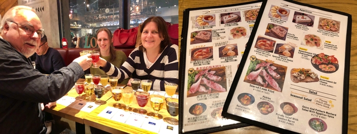 右:「ビアバルNAGAOKAYA」の中国語と英語のメニュー表
