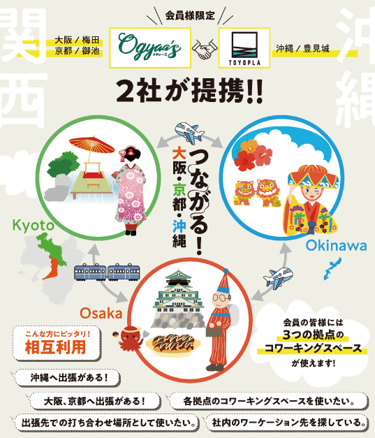 沖縄のコワーキング施設と提携を開始!! つながる 大阪×京都×沖縄