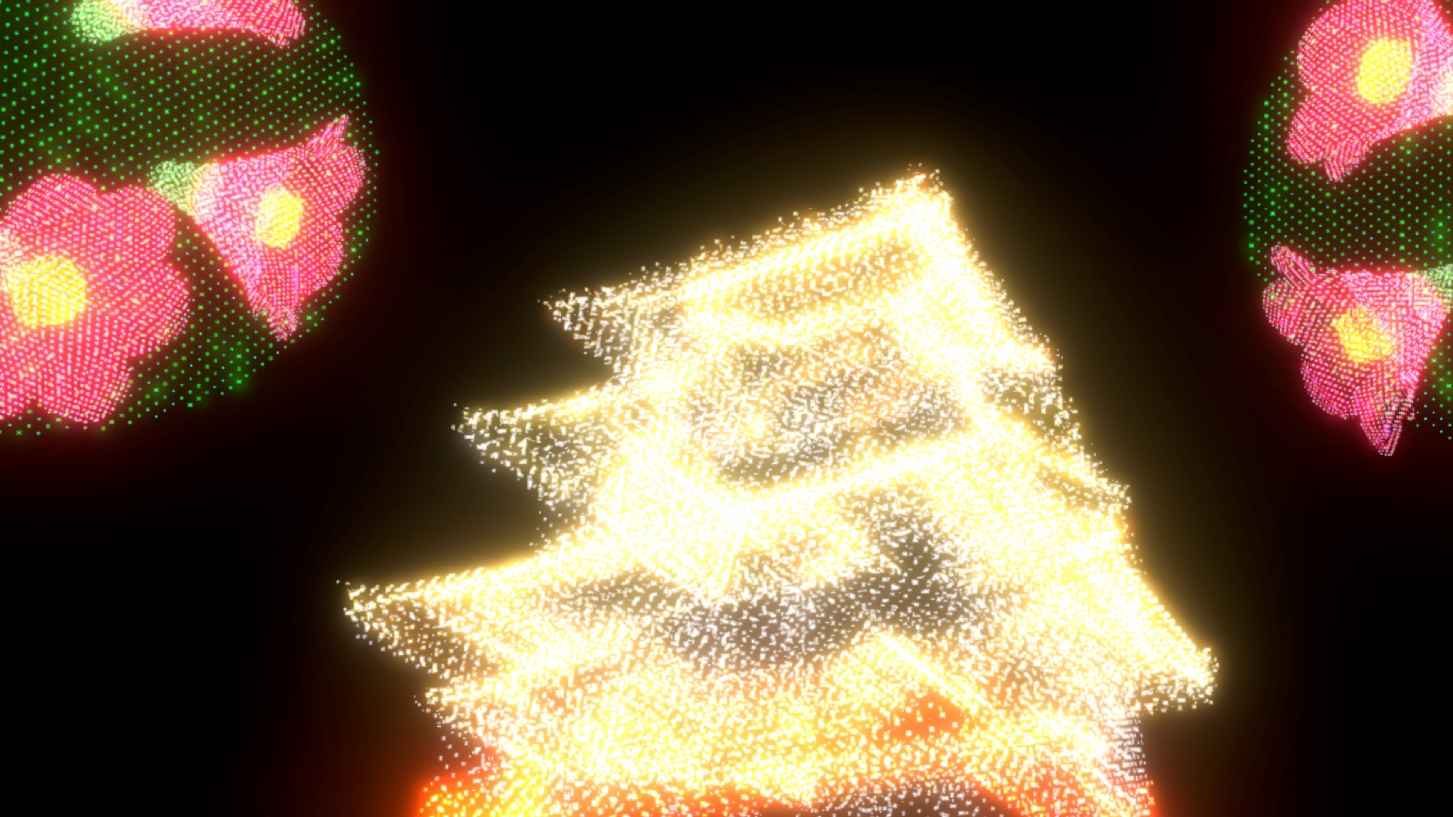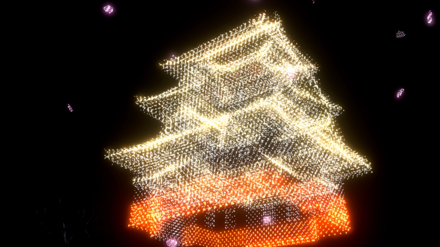 延岡城跡の夜空に映し出される3D映像作品 光と音で奏でる『ワイワイ花宵物語AirMappingShow2024』を公開