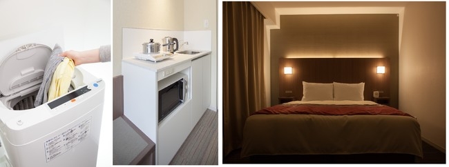 客室設備:バス、トイレ、ミニキッチン、電子レンジ、洗濯乾燥機