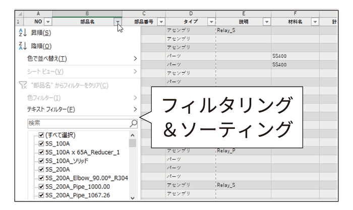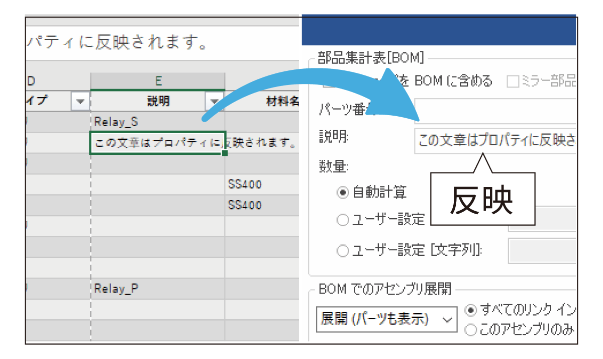 Excelと連携し、BOM集計とプロパティ編集を直感的にスピーディーに行えます。