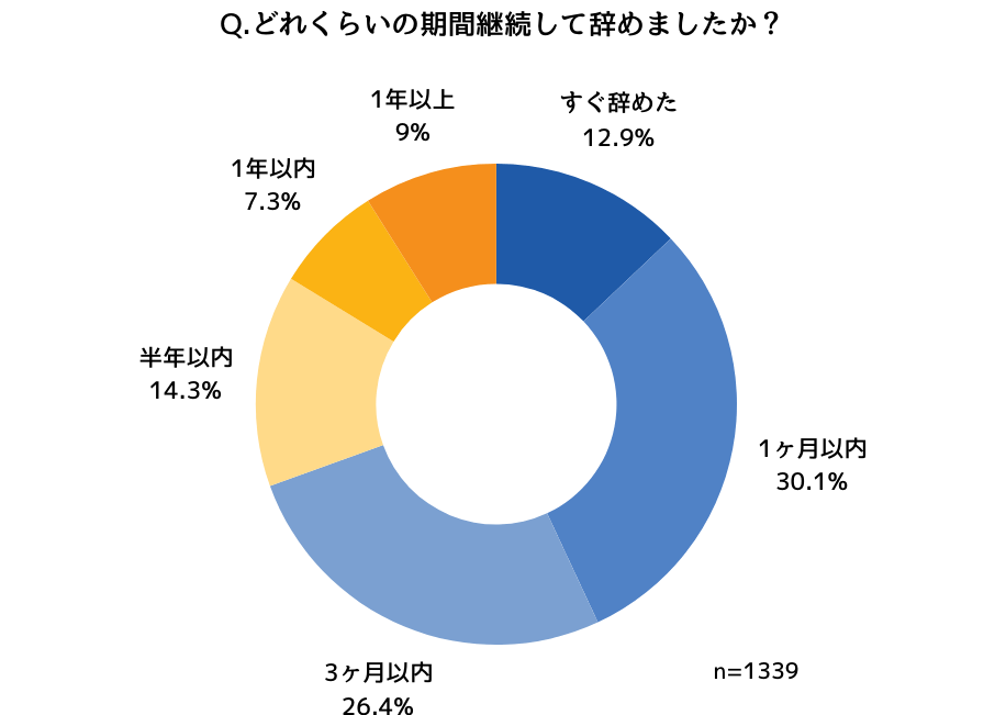 ● 辞めてしまった1,339名のうち69.4%が3ヶ月以内に辞めている