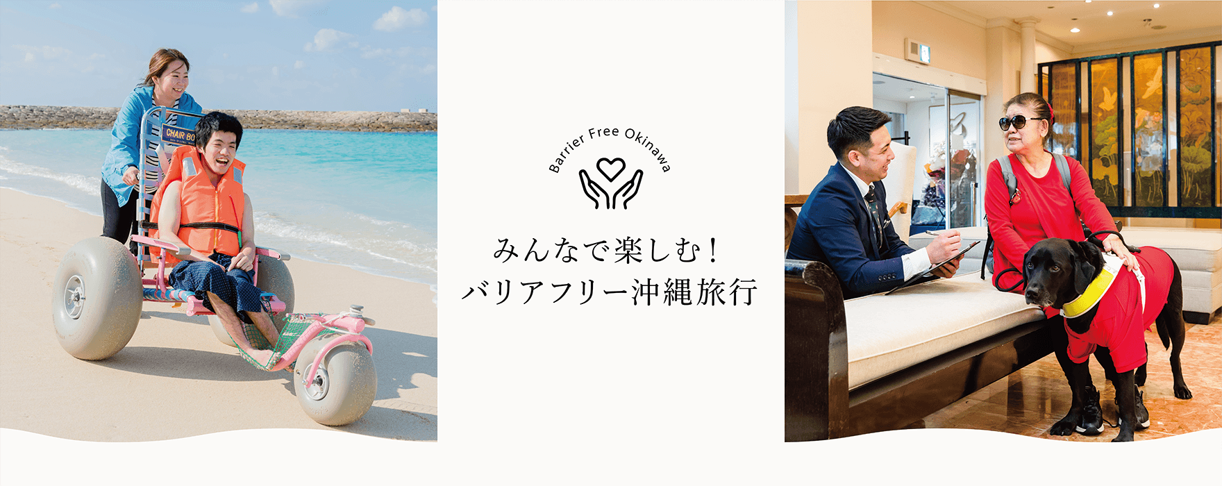 「誰もが楽しめる、やさしい観光地」としてバリアフリー宣言をしている沖縄県では、沖縄の魅力をいつでもだれでも楽しんでいただけるよう様々なバリアを取り除くことに取り組んでいます。