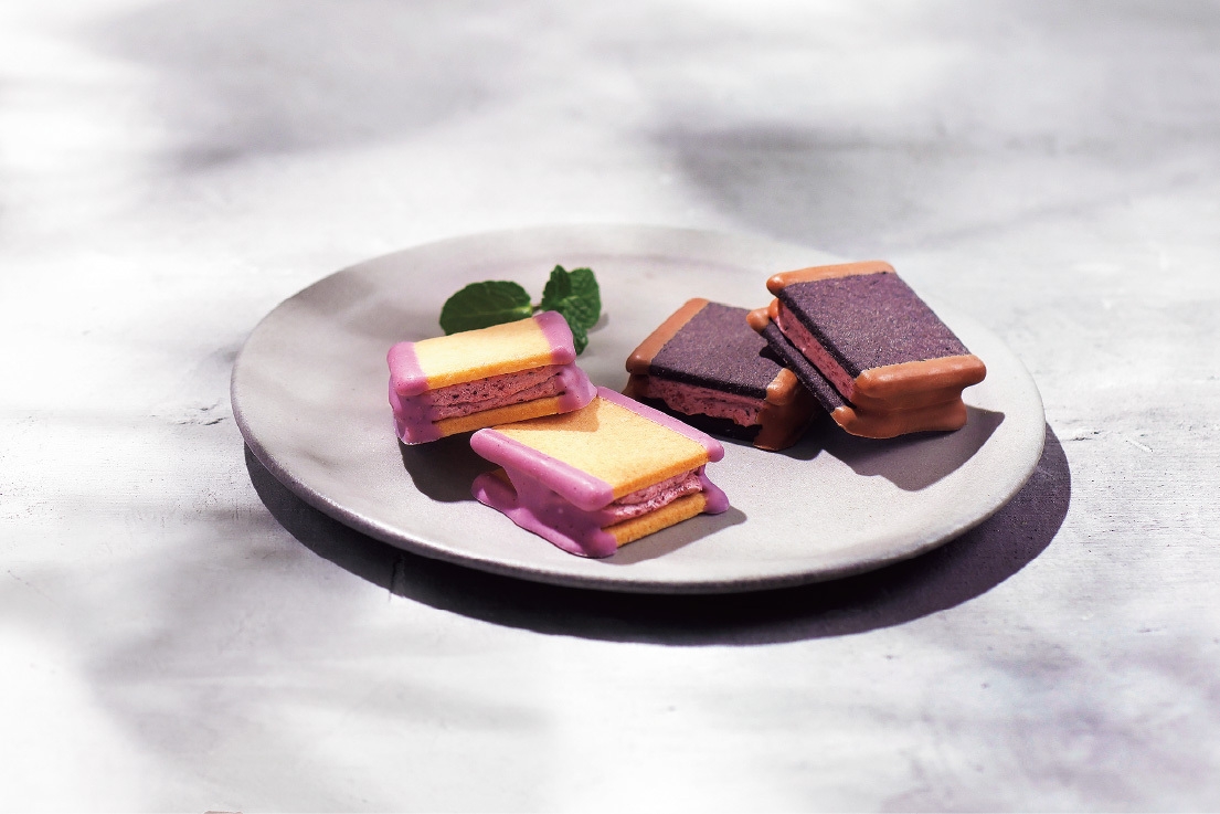 北海道産ハスカップを使ったバタークリームを薄焼きクッキーでサンド。
