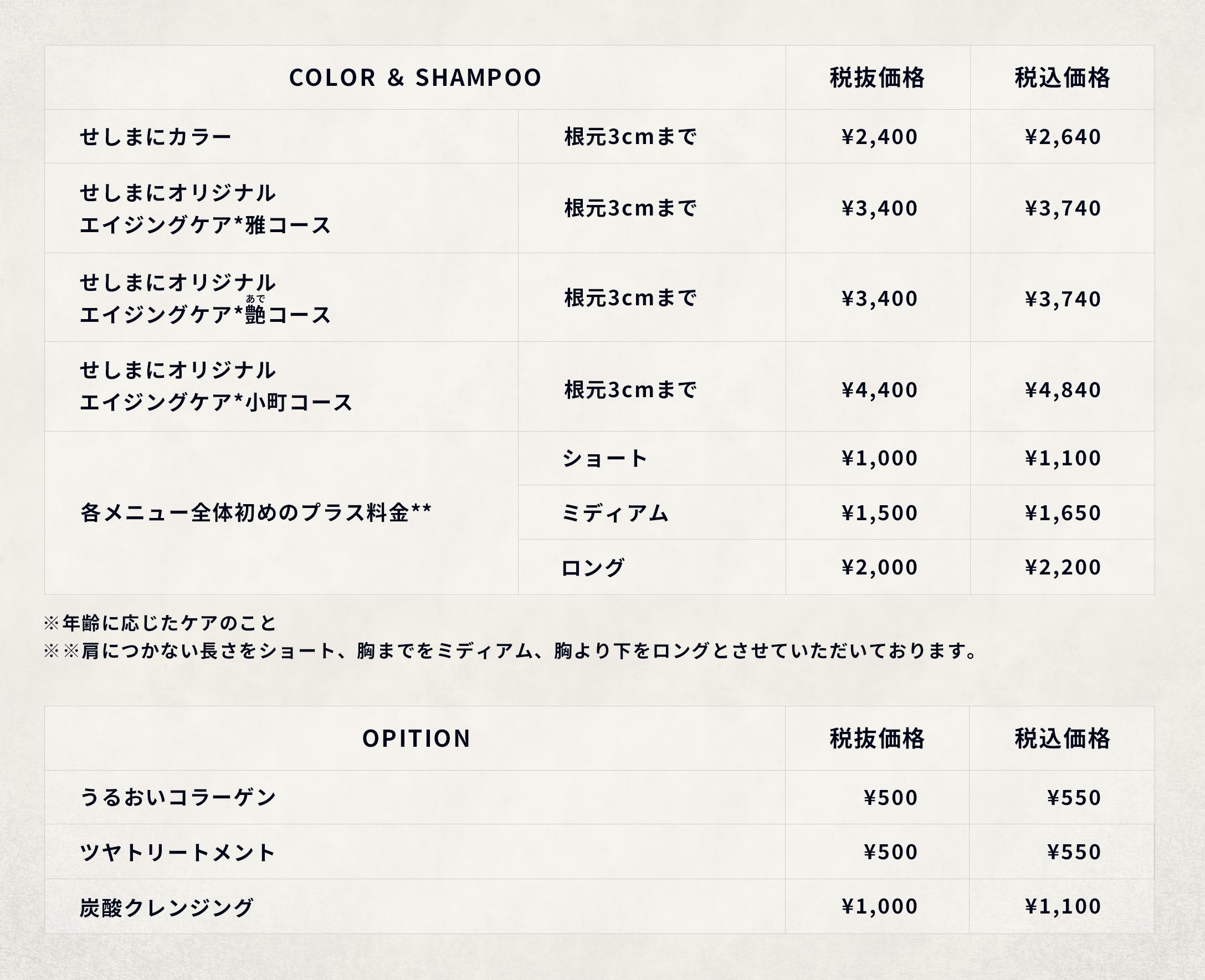 *白髪染めもオシャレ染めも同じ料金です。