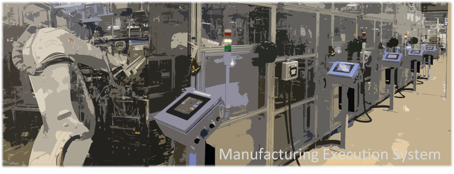 生産設備や自動搬送装置との連携でMESを中心とした自働化工場の実現により、生産力強化を目指します。