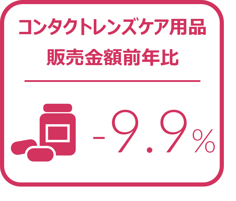 2023年第4四半期(10‐12月)のコンタクトレンズケア用品の販売は、金額前年比9.9%減とマイナスで推移した。店頭では6.9%減、インターネットは12.7%減となり、第3四半期に続いてインターネットの減少幅が店頭を上回った。