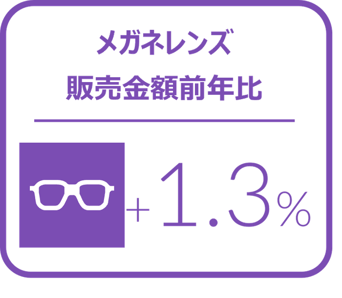 構成比の高い単焦点レンズの平均価格が上昇したことが寄与し、メガネレンズ全体の販売金額前年比は1.3%増とプラス成長となった。