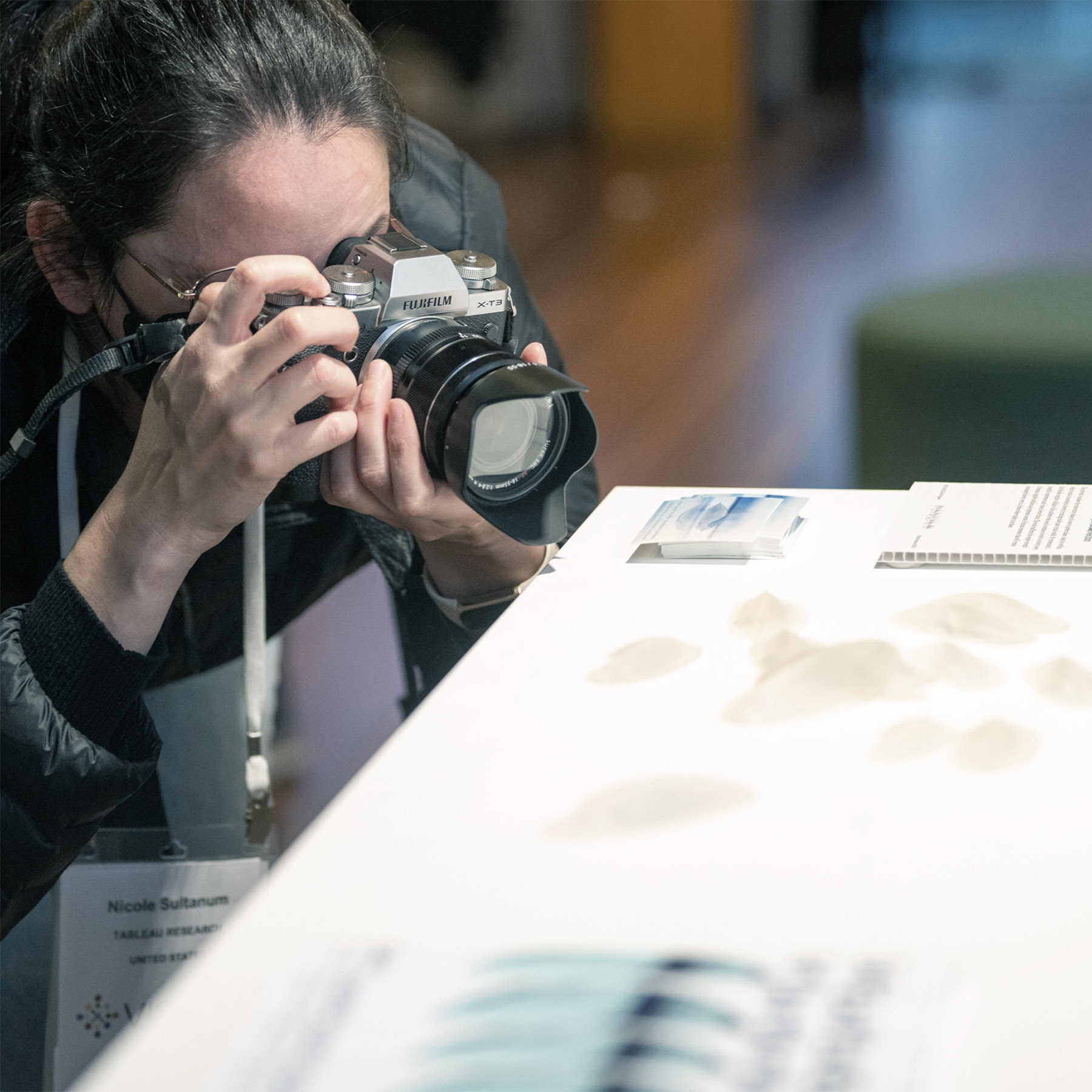 IEEEは1963年に発足した、人類社会の有益な技術革新に貢献する、世界最大規模の通信・電子・情報工学分野とその関連分野を対象とする学術研究団体で、ニューヨークに本部を置く世界160ヵ国以上、40万人を超える会員が所属しています。IEEE VIS Arts Program 2023 (IEEE VISAP 2023)は、IEEE VIS カンファレンス プログラムのミニカンファレンスおよびエキシビションで、ビジュアライゼーションの研究者、デザイナー、アーティストが集まり、データビジュアライゼーション、アート、デザインが交差する作品を展示し議論を行います。2023年度は、オーストラリア メルボルンの Melbourne Convention and Exhibition Centreでフォーラムが開催され、アートプログラムのエキシビション「Perpetual Presence」はLibrary at the Doc Galleryで開催されました。