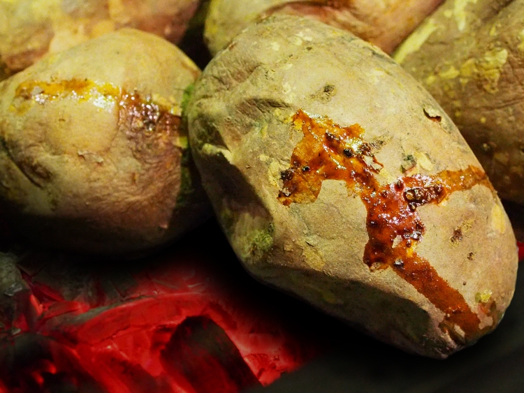 桜島溶岩プレートを使って焼いた「焼き芋」と「お米」でつくったバウムクーヘン