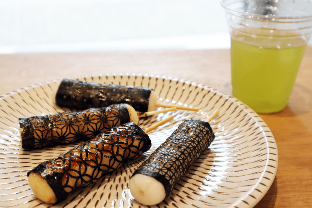 海苔は当社のレーザーカット技術を活用した「のりあーと(R)」を使用。デザインは4種類ございます。海苔のデザインはランダムで提供しますので、何が出るかはお楽しみです。ぜひ海苔であっと驚くおやつ時間をご堪能ください。