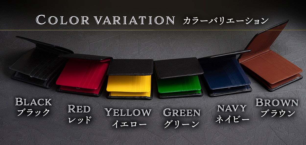 外側はブラック、内側は6色(ブラック、ブラウン、ネイビー、イエロー、グリーン、レッド)。
