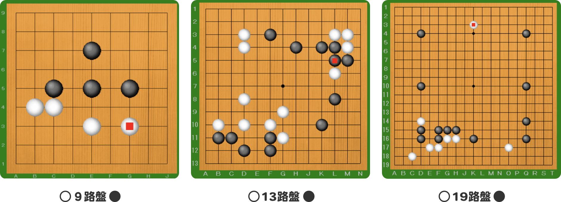 公文囲碁の学習進度にあわせて、5路・7路・9路・13路・19路の途中の盤面から対局ができます。公文囲碁で学んだ内容の復習や対人戦に向けた実戦の対局練習ができます。また、囲碁に入門したばかりの時には、理解が難しい「終局判断」についても、ここから碁でフォローします。