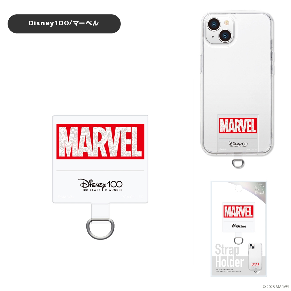 ディズニー100にインスパイアされたデザインのストラップホールのないケースに挟むだけでストラップが付けられるダイカット ストラップホルダーです。端末とケースの間にストラップホルダーを挟み込むだけで、ストラップホールを付加します。(※お手持ちのケースや充電口の形状によってはホルダーが収まらない場合があります。)端末やケースに貼り付けしないので、汚れずいつでも付け外しが可能です。