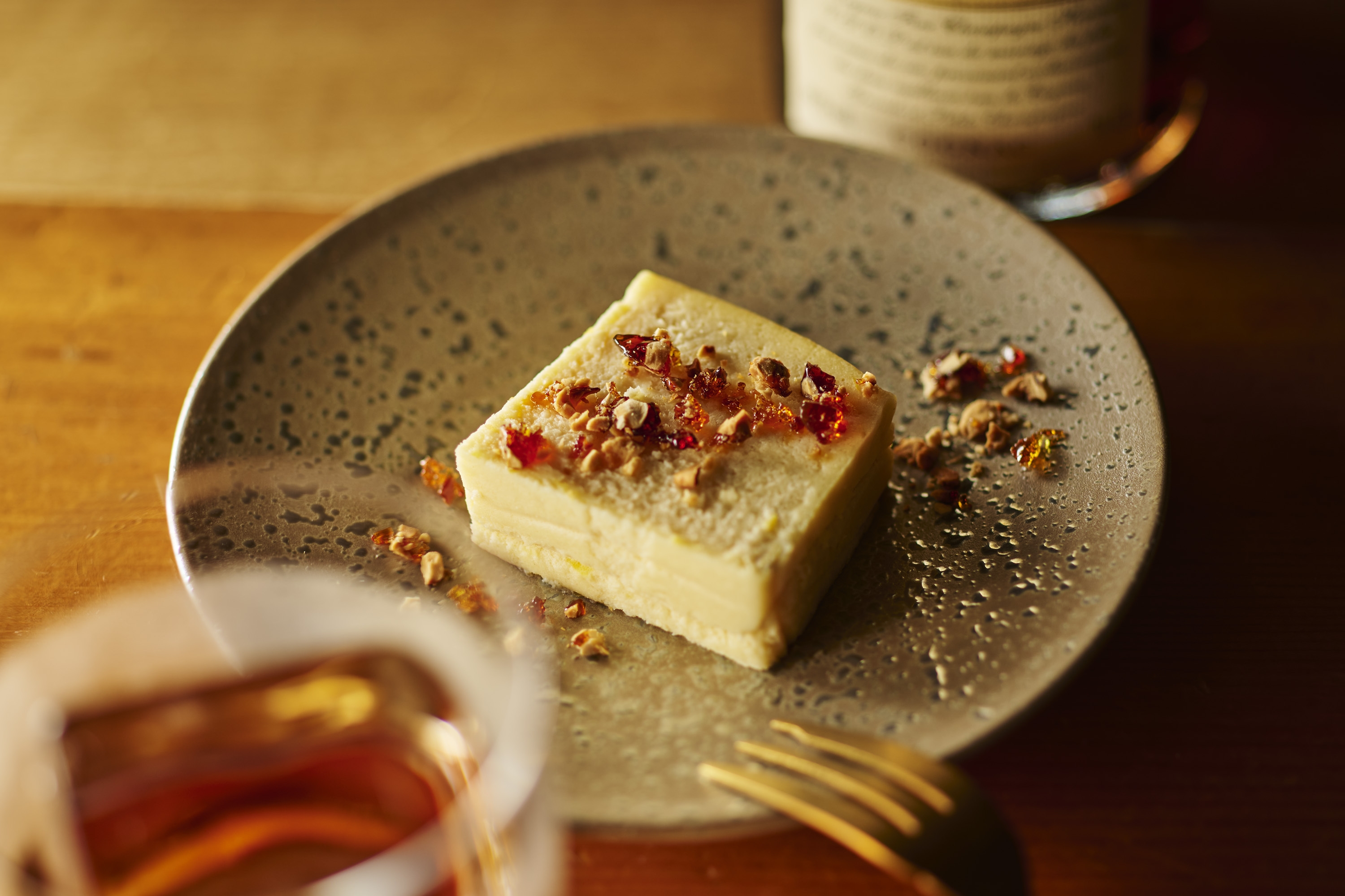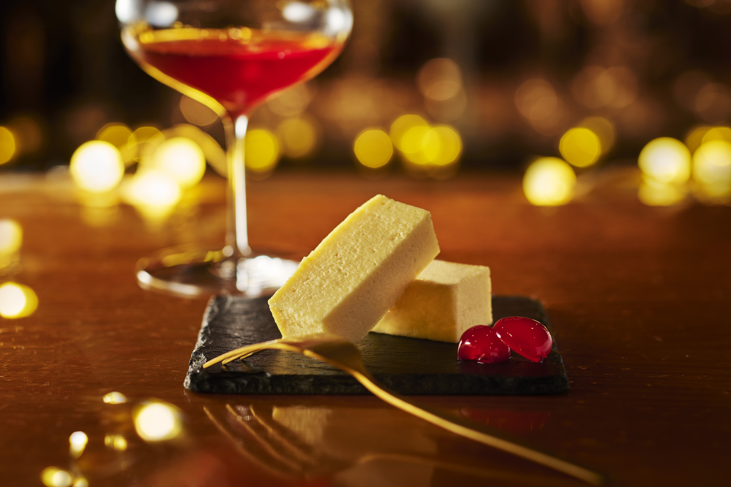 冷蔵ではチーズの濃厚さが、室温ではレモンの酸味が際立ち、温度の違いで異なる味わいを楽しめます。お酒と一緒に楽しむために設計されたデザートです。