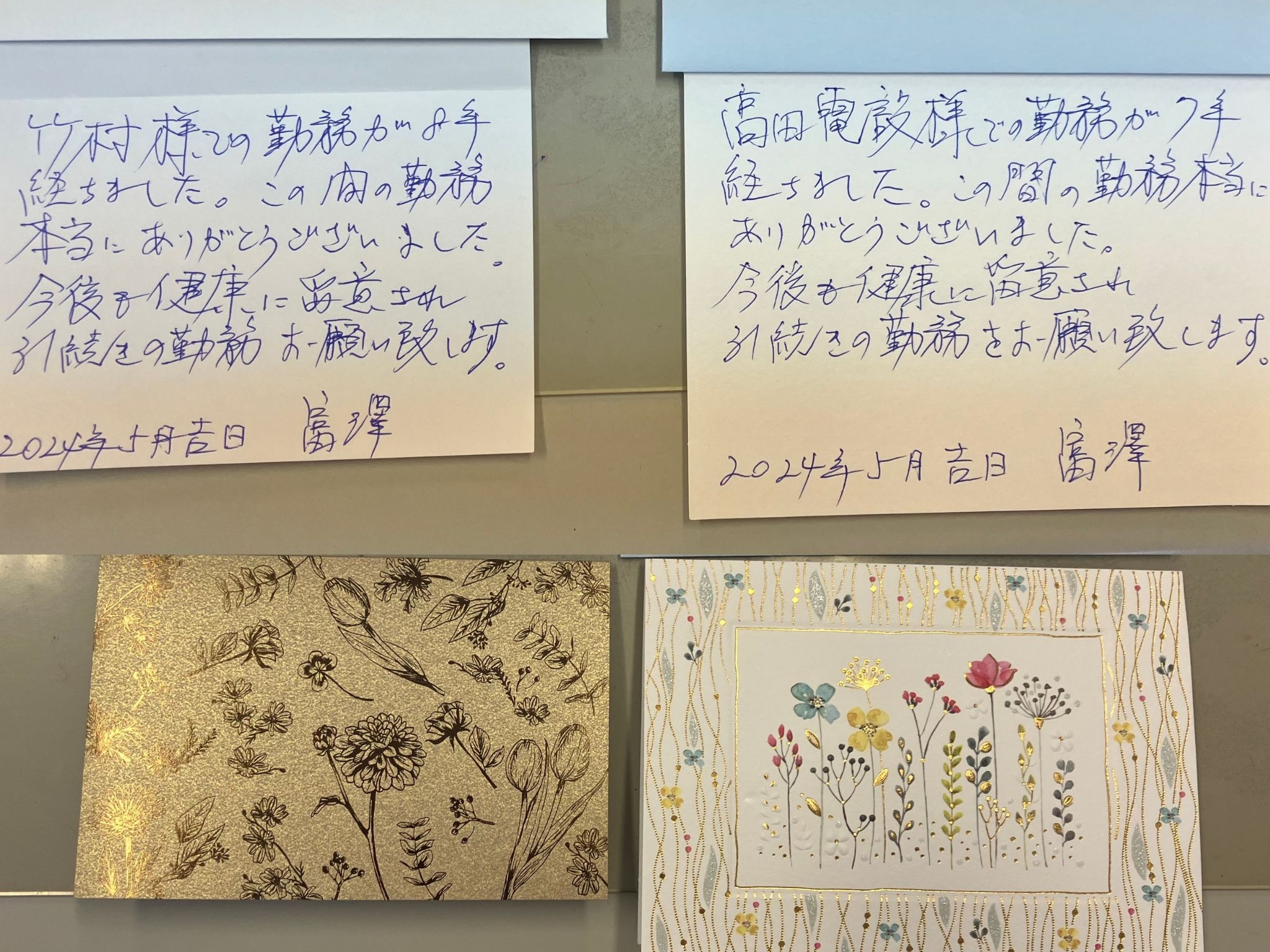 当社では定年を迎える60歳前、再雇用が終了する65歳前の人生の節目に、この先の長期就労を見据えて登録希望者が訪れます。実際に8年間同じ派遣先で勤務しているスタッフが8名おり、そのうち最高年齢は77歳です。長く勤務している秘訣は面接の際、派遣先社長との相性をイメージしてマッチング前提で行なっていることです。面接は自身もシニアである取締役副会長が一貫して行い、採用後も1年ごとに手書きのメッセージカードを渡すなど大手とは一味違う関わり方をしています。その人に合う職場選定に重きをおいているため派遣先企業と良好な関係を築くことができ、経理という重要ポジションを信頼して長く任されています。その結果、派遣登録者は10年間で3倍に増えました。