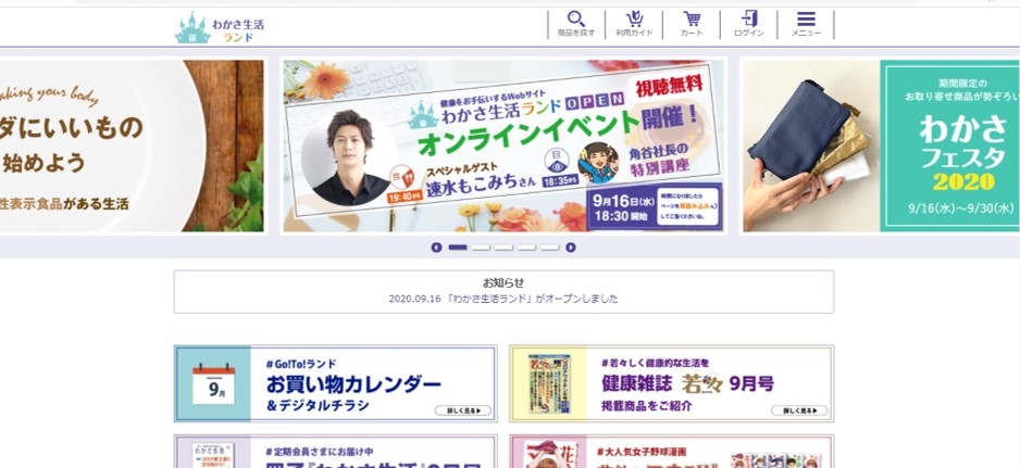 【本日オープン】9月16日(水)わかさ生活公式Webサイト「わかさ生活ランド」がリニューアルオープン!