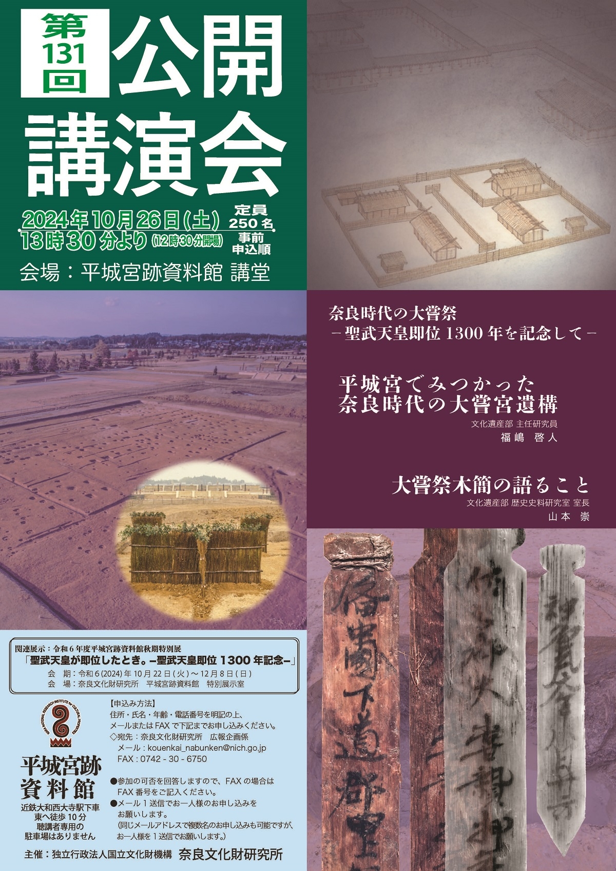 [奈文研イベント]奈良文化財研究所 第131回公開講演会「奈良時代の大嘗祭-聖武天皇即位1300年を記念して」(聴講無料)のご案内