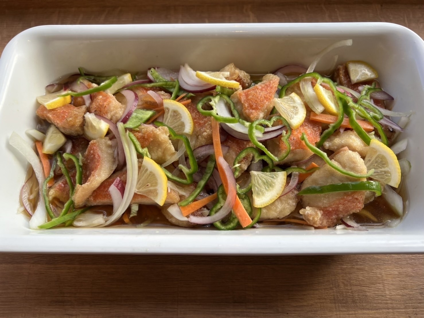 「金目鯛の兜焼き」「金目鯛と大根の煮物」「金目鯛の南蛮漬け」「金目鯛のムニエル」「金目鯛の揚げあんかけ」などの創作料理も日替わりで数種類ずつを提供いたしますので、ぜひ様々な味わいの金目鯛をお楽しみください。