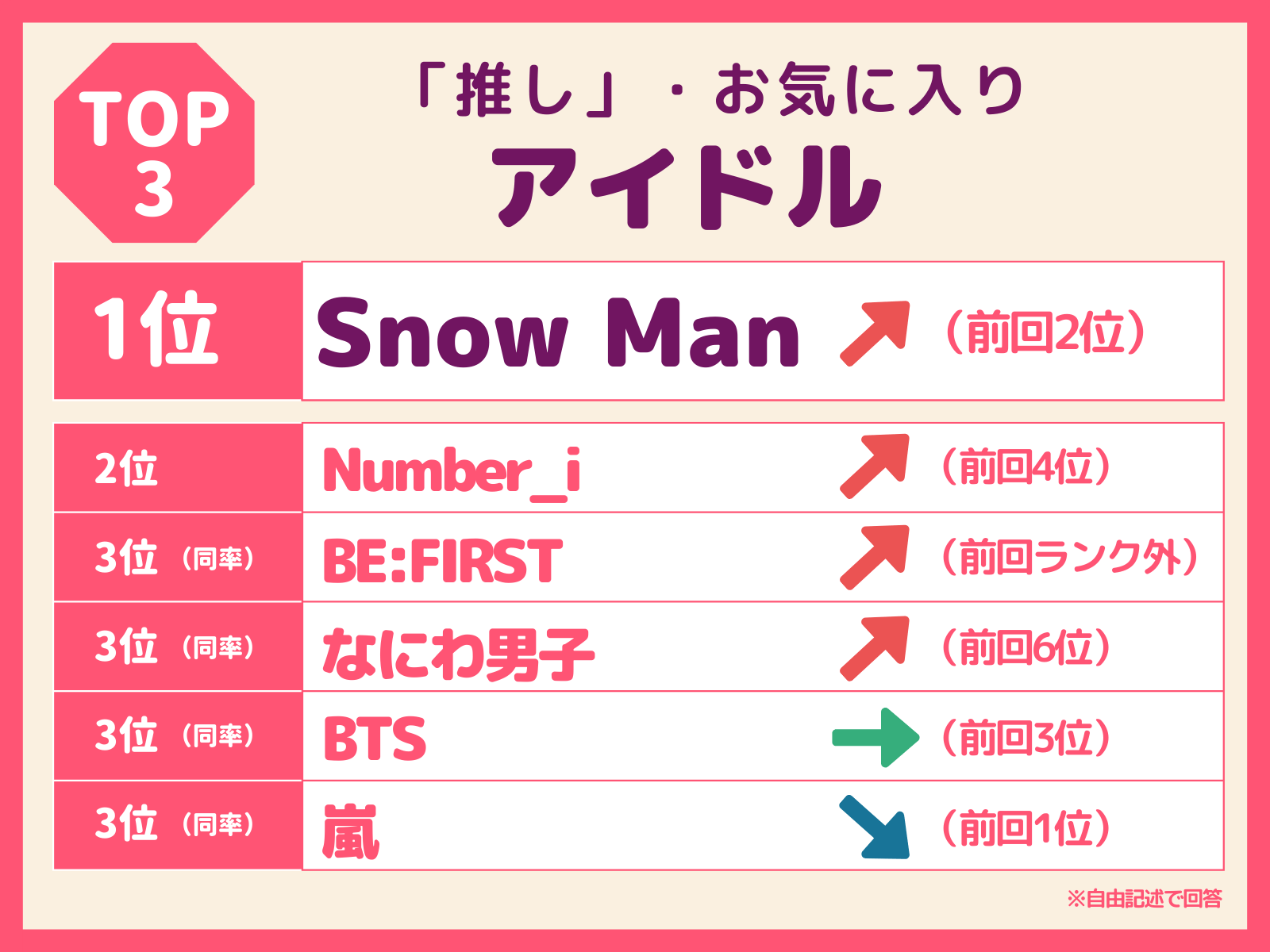 Snow Manが1位。前回ランク外だった「BE:FIRST」が急上昇。