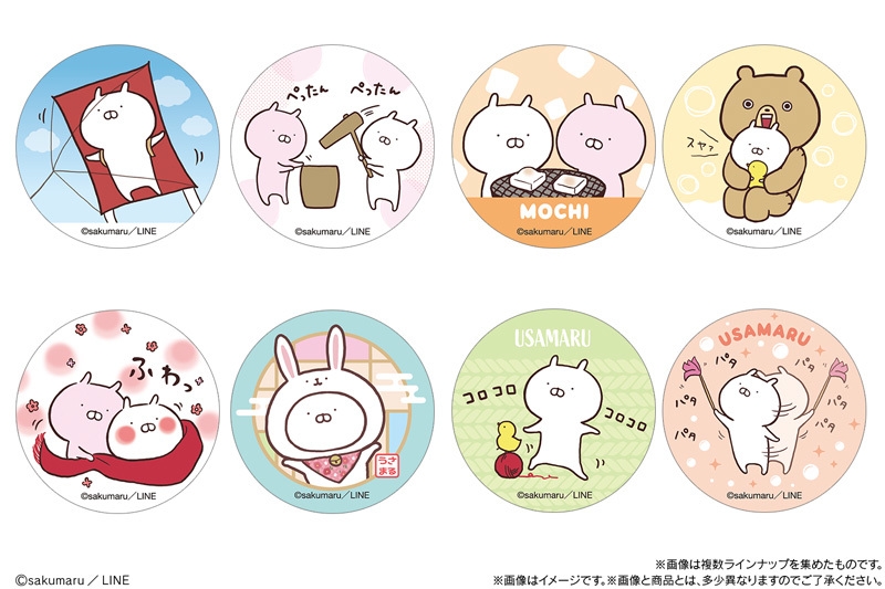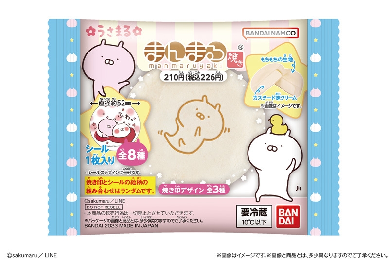 もちもち食感のまんまるい生地に、ゆるゆるとした可愛いデザインの焼き印を施したチルドスイーツです。焼き印は全3種類で、生地の中にはカスタード味のクリームが入っています。ランダムで1枚付属するおまけシールは、“冬”をテーマにしたデザイン。“卯年”にちなんでうさぎの帽子をかぶったうさまるや、餅つきを楽しむうさまるとうさこのデザインなど、うさまるの可愛さがギュッと詰まったシールが全8種類です。どのシールに出会えるかは袋を開けてからのお楽しみです。