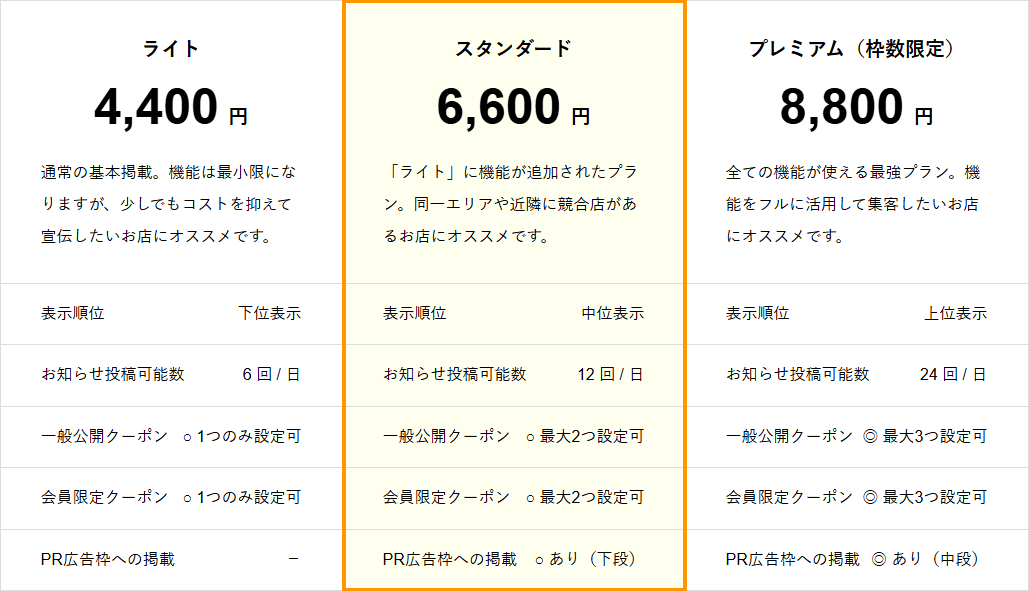 ※店舗会員登録を完了した時点では、初期設定費0円の無料掲載【フリー】となります。