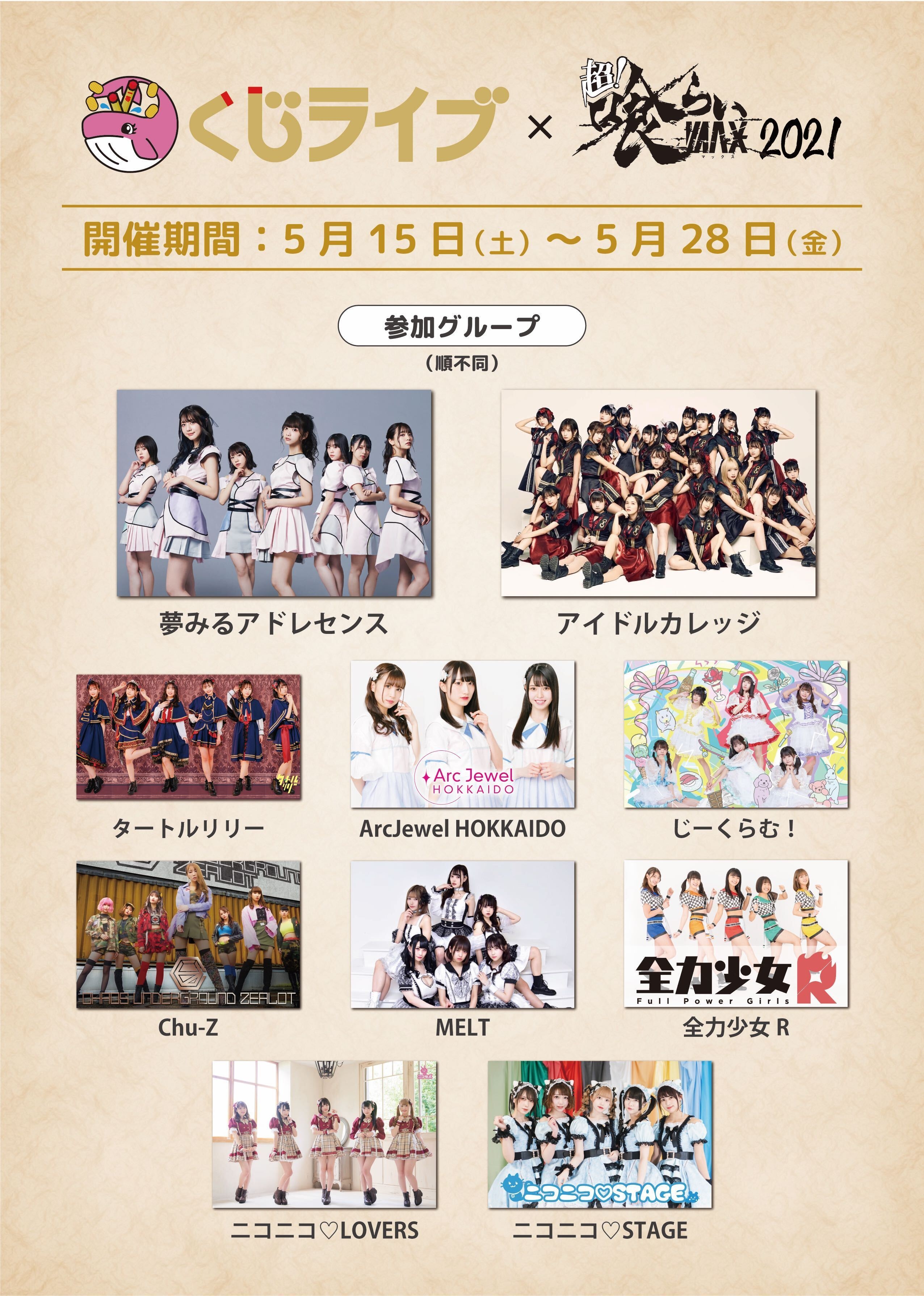 株式会社FAIR NEXT INNOVATION(所在地:品川区、代表取締役:横山 学)は、2021年5月15日より自社開発したオンラインくじ専門メディア「くじライブ」をグランドオープンいたします。グランドオープンに伴い、SKE48・AKB48 チーム8・BMK・MAG!C☆PRINCE他、男女総勢約50組の人気アーティストのオンラインくじイベントを開催させていただきます。