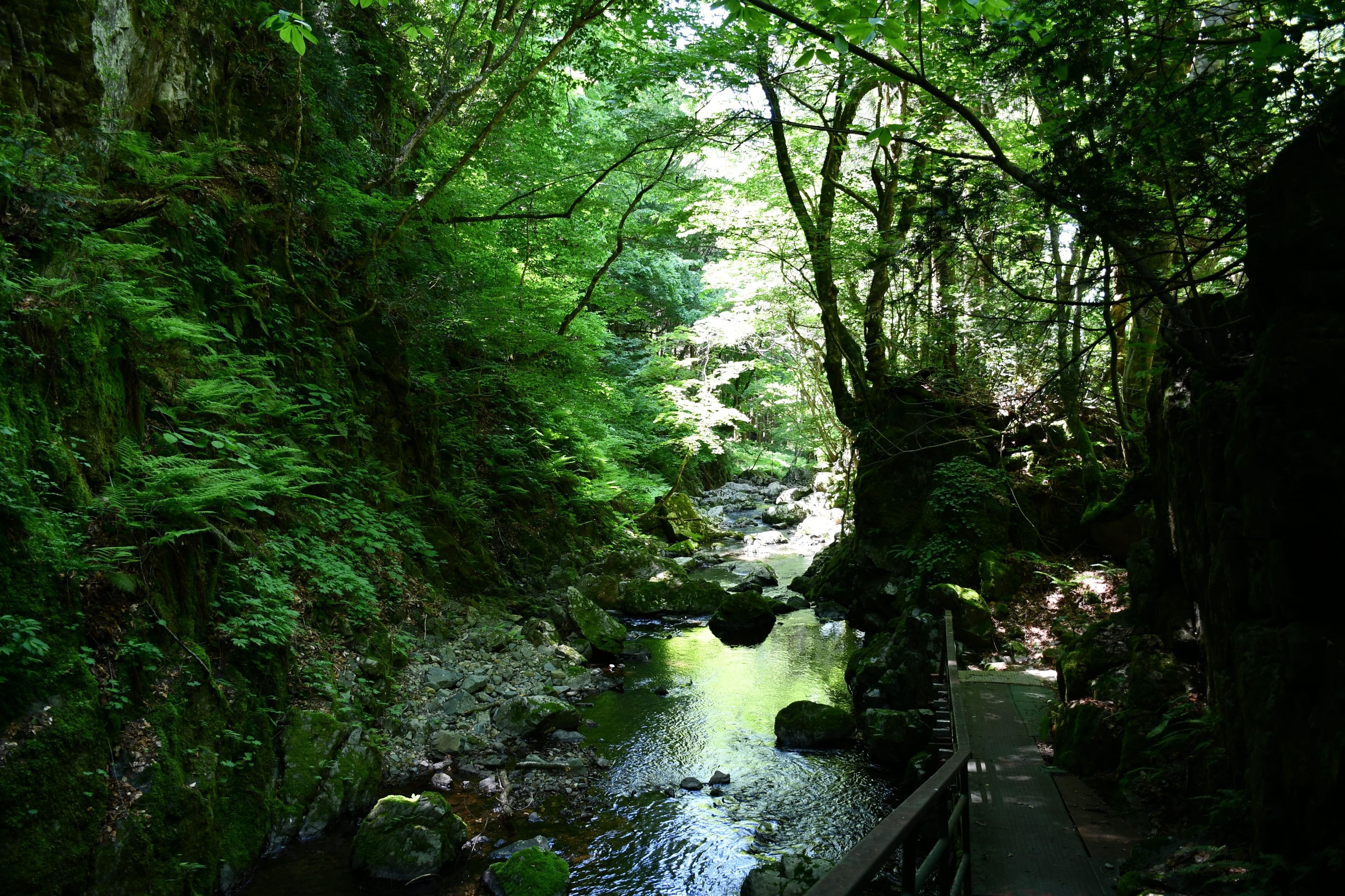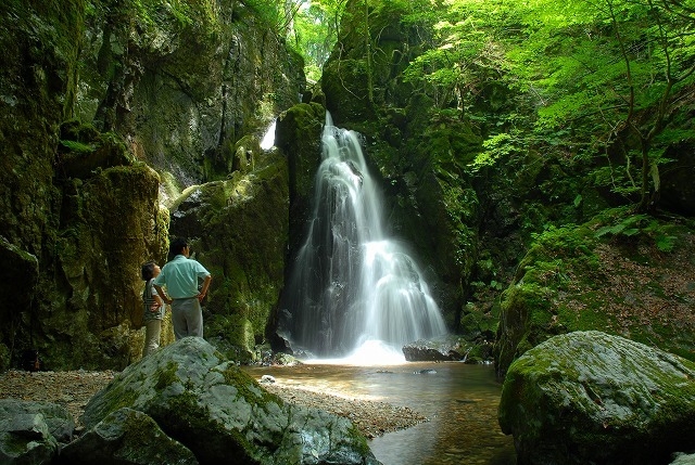 まるで山水画のような、巨岩に包まれた「山乗渓谷」。涼水亭はそんな渓谷の中にあります。遊歩道を進めばマイナスイオン溢れる「不動滝」も。真夏でも渓谷の気温は21℃。夏休みの観光にもぴったりです。