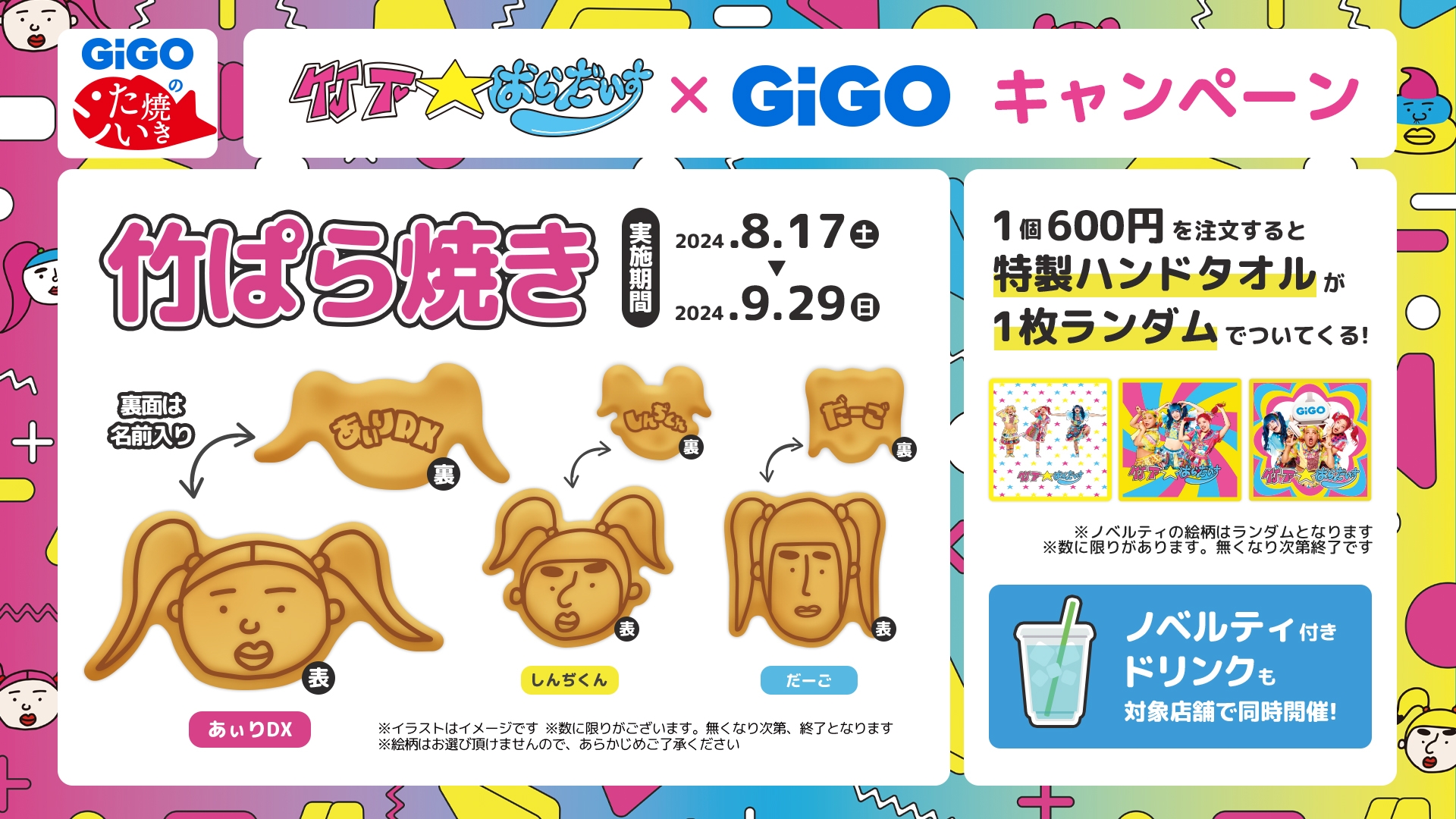 株式会社GENDA GiGO Entertainment(本社:東京都港区 代表取締役社長:二宮 一浩 以下、当社)は、GiGOグループのお店におきまして2024年8月9日(金)より、2024年7月20日(土)から初の全国ツアーを開催する”オモロカワイイ”で世界を埋め尽くす☆原宿クリエイターアイドル『竹下☆ぱらだいす』とのコラボレーションキャンペーンを開催いたします。