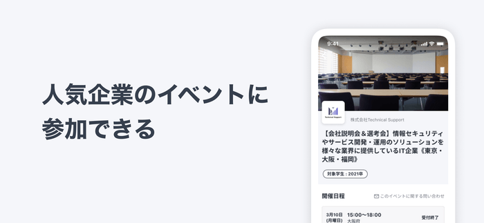 ~希望職種や地域ごとに、人気企業のイベントを簡単検索。その場で申し込みも可能!~