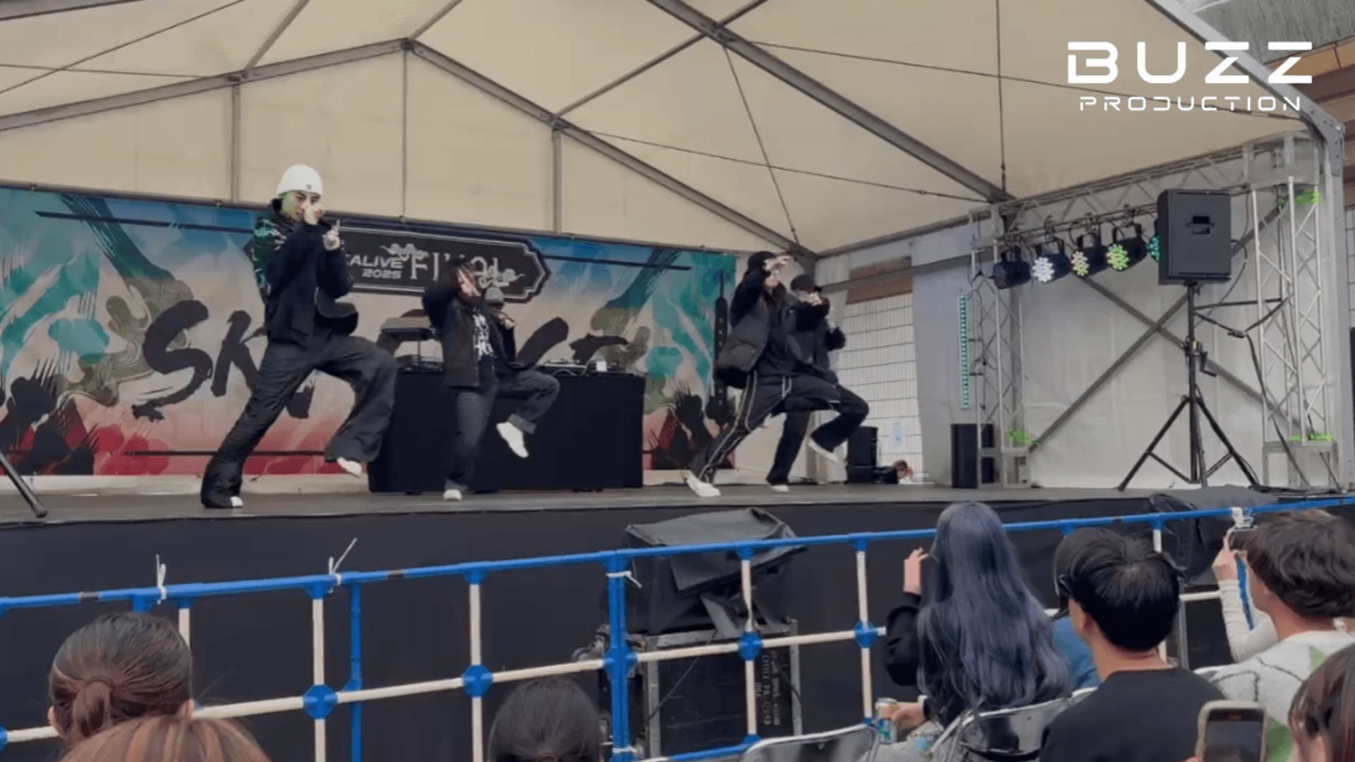ストリートダンスバトルの日本一を決定する 「マイナビDANCEALIVE (マイナビ ダンス アライブ)」の2025シーズン決勝大会が2025年4月20日(日)に開催されました。当大会の野外ステージであるSKYSTAGEにて、BUZZPRODUCTION所属、a-LAND専属DJクルーである「a-crew」が出演いたしました。