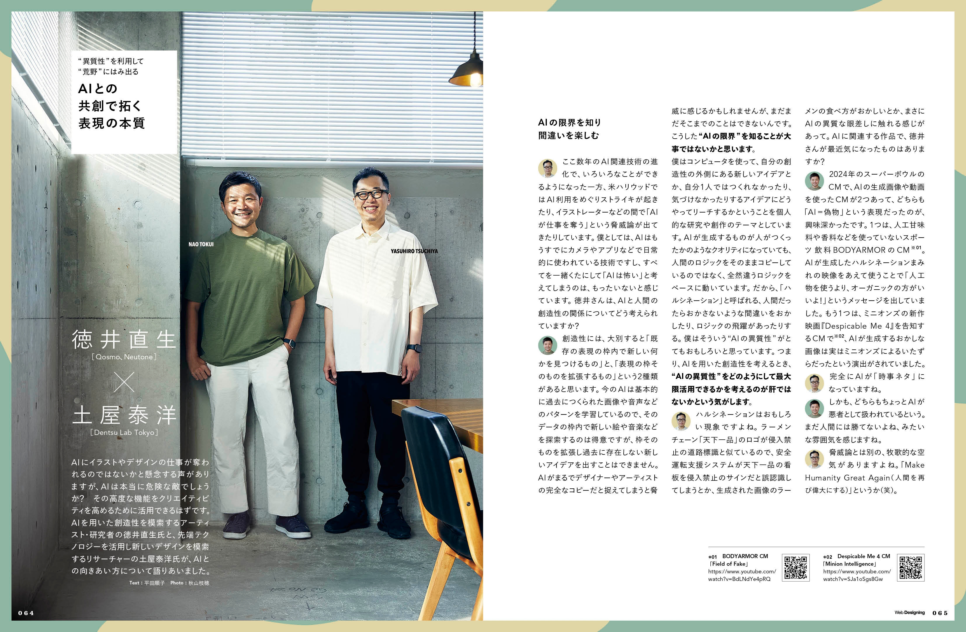 第1特集「AIとクリエイティビティ」、第2特集「データリテラシーを高めるスキル」といった読み応えたっぷりの記事に加え、Web Designingの歴史を語る上では欠かせないお二人による、リニューアル特別企画「ロングインタビュー:中村勇吾&清水幹太」や新連載をスタートしました。