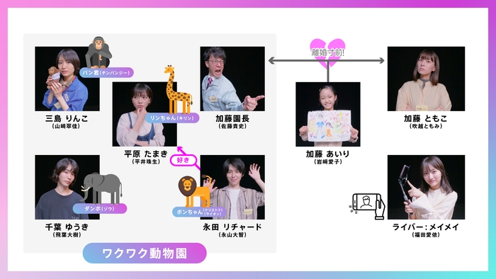 台本なしで6人に与えられるのは、それぞれの「人物設定」と「目的」。それ以外はみんなで物語を完成させなければならない。終わるまで誰も想像もできない展開となります。第二弾のお題は「動物が消えた動物」、経営の存続をかけた一大イベントが控える動物園を舞台に巻き起こる物語。しかし、突然動物達が消える。そこにはそれぞれの想いがあった。