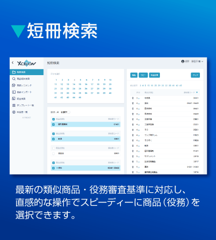 「Xcelion(エクセリオン)(R)」は、複数の検索機能やレコメンド機能を用いて、最適で漏れのない商品(役務)リストを効率的に作成できる、サブスクリプション型のオンラインサービスです。