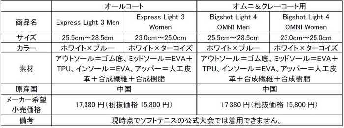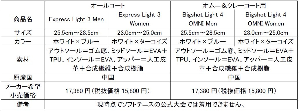 ■テニスシューズ「Express Light 3」「Bigshot Light 4 OMINI」の概要